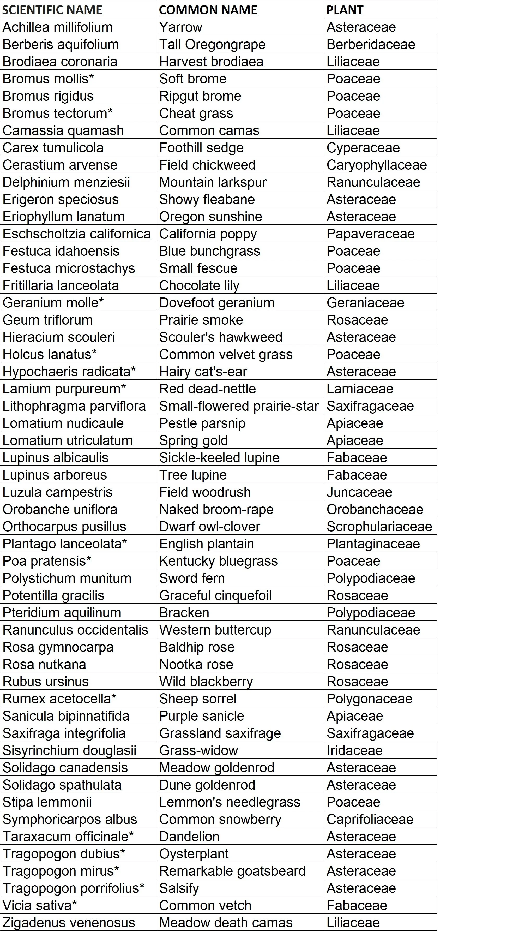 Kah Tai Prairie Plant Species List